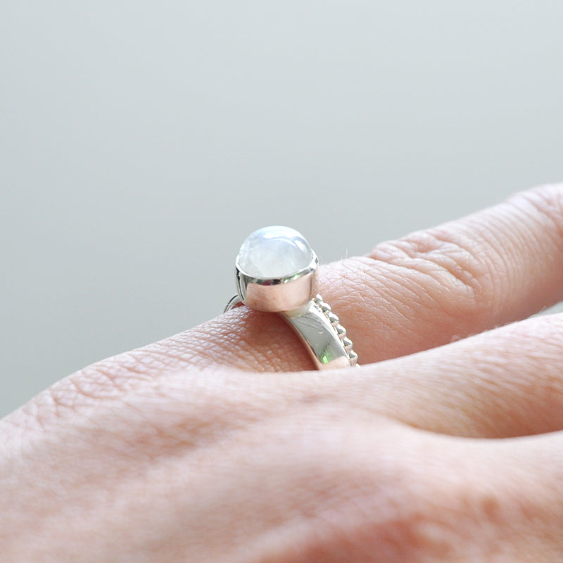 Zilver & Zoet sterling zilveren 925 ring met een regenboog maansteen edelsteen.