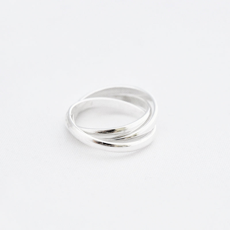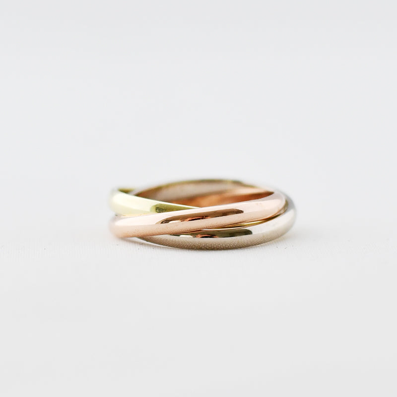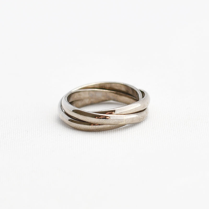 Drie ringen in elkaar verbonden. Deze ring staat voor de drie-eenheid. Wanneer de ring om de vinger gedragen wordt, schuiven de ringen mooi over elkaar heen.
