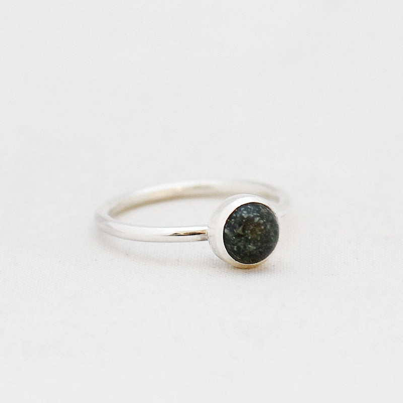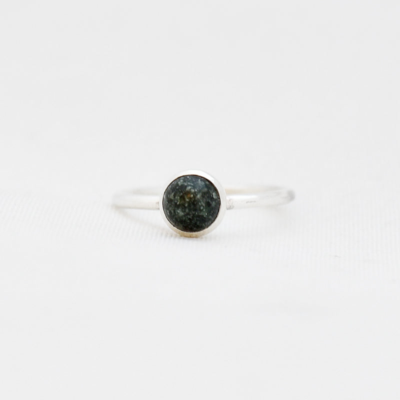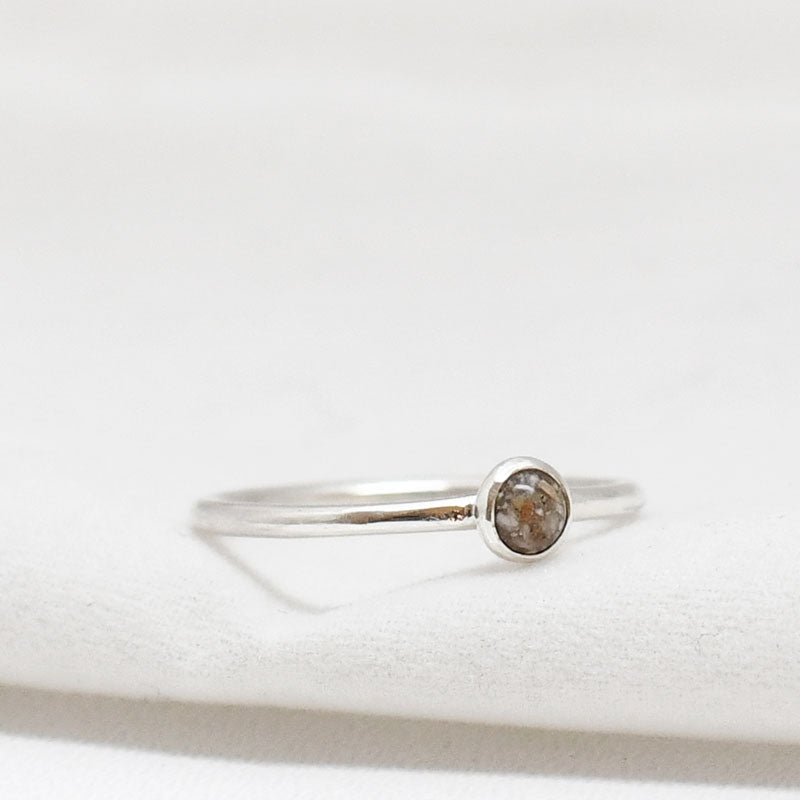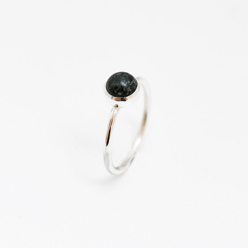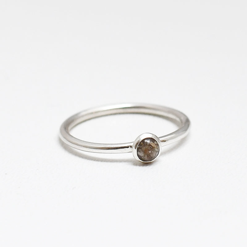 Zilver & Zoet sterling gehamerde ring met as steentje.
