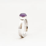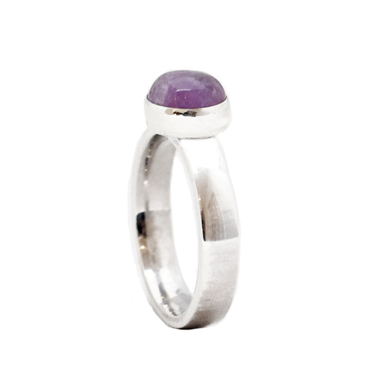 Het ontwerp is eenvoudig maar toch opvallend, met een gladde band die de aandacht richt op de amethist edelsteen die in het midden van de ring is geplaatst. Leuk te combineren met de stapelringen van Zilver & Zoet.