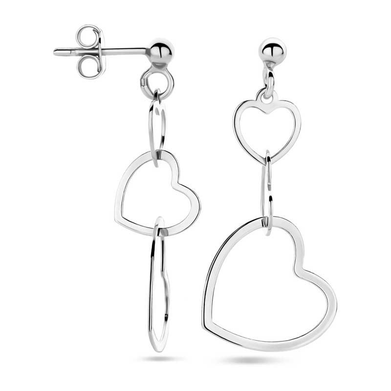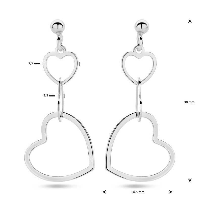 Zilver & Zoet 925 sterling zilveren oorbellen met drie hartjes.