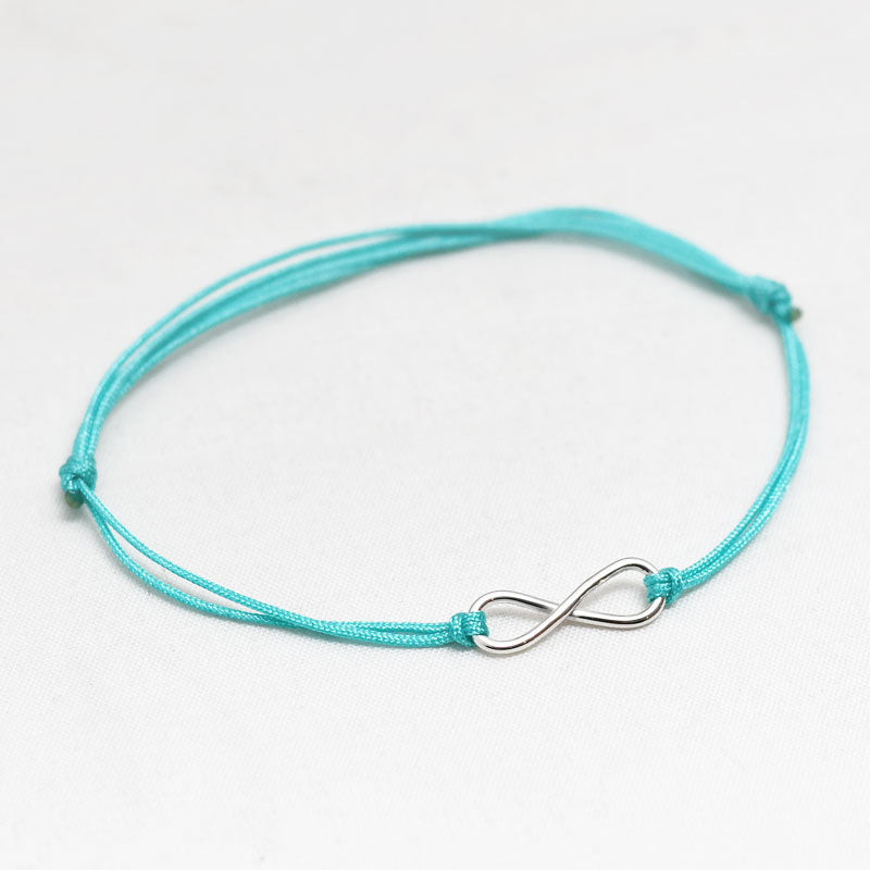 Zilver & Zoet armbandje van een nylon koord met een sterling 925 zilveren infinity teken.