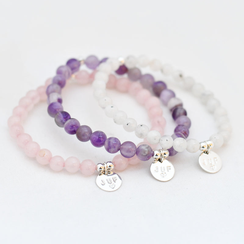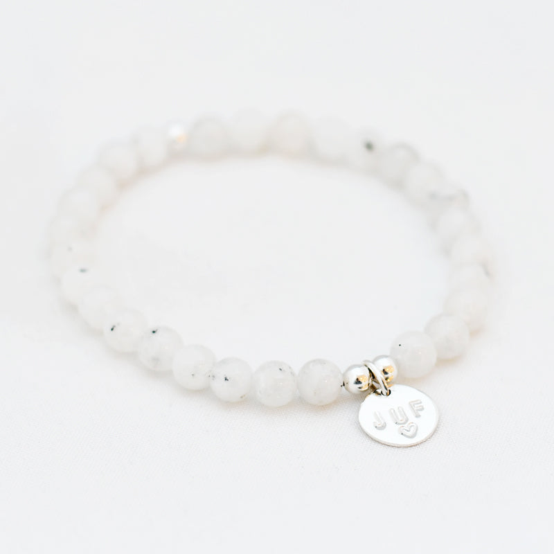 Zilver & Zoet armbandje van edelsteen maansteen (6 mm) met een 925 sterling zilver bedeltje.
