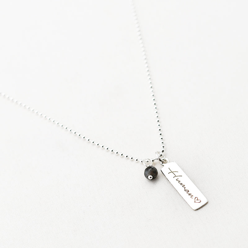• Ook mogelijk om te laten graveren (laser techniek) in alle mogelijke lettertypes (€30,- extra). (voorbeeld ketting Human).